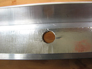| The corner pieces are borrowed from the lid and are there to help square the "top," but do not get epoxied in place. | Add weights to insure everything is flush. | The finished top flipped over after it has dried. Notice no corner pieces. |