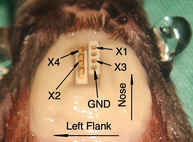 [10-OCT-25] The EIF must be cemented to the skull of the subject animal. For a detailed description of the procedure, see our HMT Surgery Protocol, EEG and HMT Surgery Protocol, EEG and EMG. We provide summary information below.