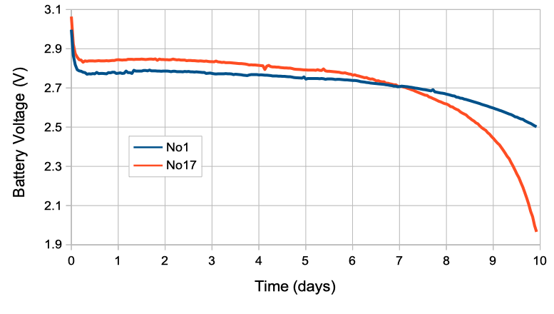 [30-JUN-25] All A3040s are equipped with non-rechargeable lithium coin cells. When one battery is exhausted, we remove it from the A3040's battery retainer. We can load a new battery whenever we like. The A3040 battery retainer A3040 is designed to hold a CR1225 battery, which is 12.5 mm in diameter and 2.5 mm thick. Without any modification, the retainer will hold a CR927 (2.7 mm thick) or CR1025 (2.5 mm thick). If we bend the retainer's tongue down, the retainer will hold a CR1220 (2.0 mm thick). The CR927, CR1025 reduce the mass of the A3040 by roughly 10% compared to one equipped with a CR1225 battery, but their capacity is 30% less. The CR1220 drops the mass by 5%, but its capacity is 15% less. We assume that our customers will be using the A3040 with CR1225 batteries.