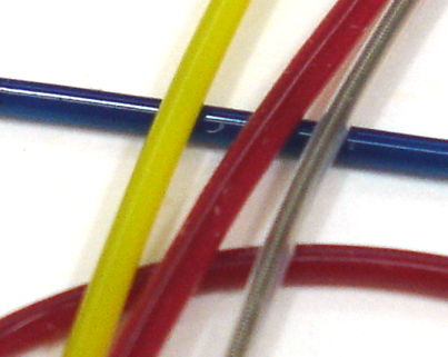 The thumb test shows us that the low-cycle fatigue resistance of copper and silver is far inferior to that of 304V stainless steel and nitinol. The nitinol wire was unaffected by 200 thumb-test cycles. The 304V and 316 stainless steel wires were merely kinked after 200 cycles, whether annealed, half-hardened, or full-hardened. We stop after 200 cycles because we don't want to cut through the skin on our thumbs. We could grab the wires with pliers, but that would introduce high stress concentrations at the gripping points, and change the nature of the test.