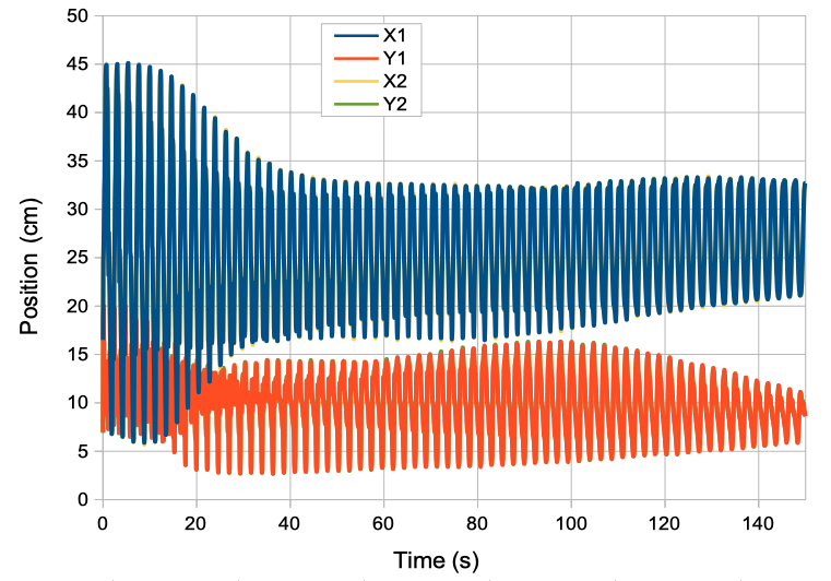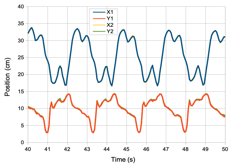 [16-DEC-22] Receive two hour-long recordings from P0157 and P0160 in Marseille, see report. Reception from both is 99%, limited by collisions. Tracking in P0157 shown below for two animals during the entire hour of M1671186902.ndf.