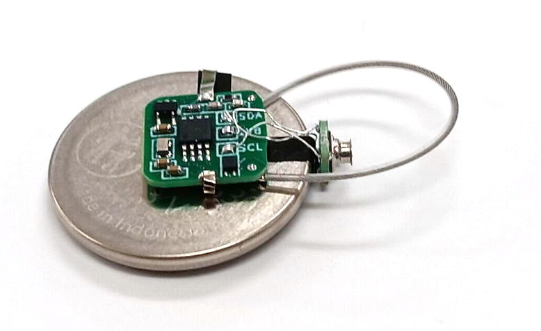 [19-SEP-25] We construct a physical sample of what we think the mouse-sized BPM will look like. We take a CR1620 battery and a circuit board. We solder an antenna and a mounting wire. We fasten a sensor with tube to the battery and circuit with tabs.