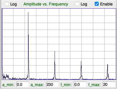 The spectrum of the heartbeat shows a clear fundamental frequency and harmonics. We use an interval processor to find the spectrum component with the highest amplitude, and we use this as our measurement of frequency.