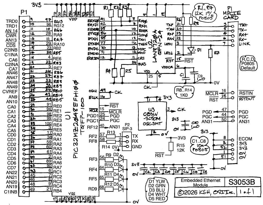 [06-FEB-26] We submit the A305301B for fabrication. We failed to reverse the polarity of the PHY's Ethernet activity output, so we expect the light on our RJ-45 socket to turn on when there is no link.