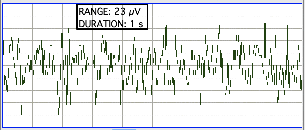 We obtain the spectrum of X1 with AC coupling. With no filter, the noise amplitude is 5.0 μV rms. With low-pass filtering at 640, 320, 160, 80, and 40 Hz, the noise is 4.6, 4.0, 3.2, 2.4, and 1.7 μV rms.