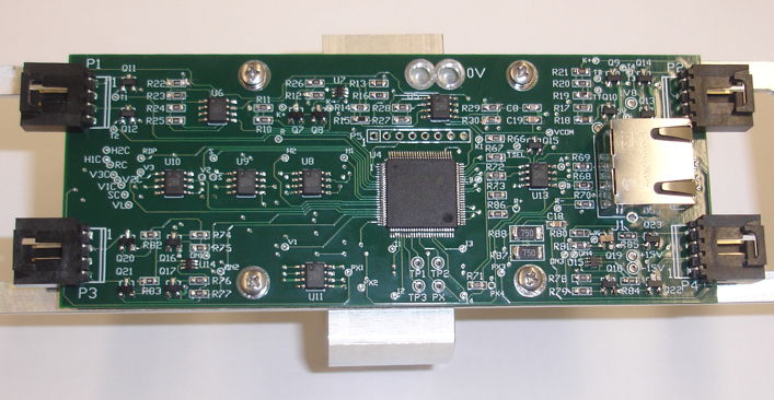 Figure: The Bar Head (A2082A). Provides connection to four ICX424 image sensors, four 100-Ω RTDs, and four Blue Nine-LED Arrays.