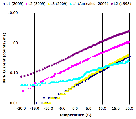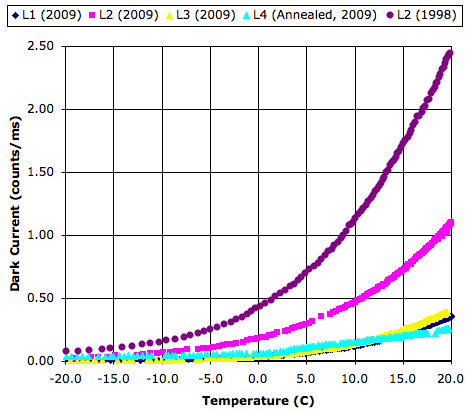 - Dark current drops 10% in 1 yr.