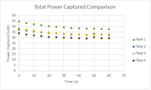 It was clear after each test that the apparatus built to hold the ferrules in place left a small amount of residue on the surface of the ferrule. Heavy scratching will affect the power captured, but if a ferrule is handled properly and used gently, the power capture will not be greatly affected. The use of ferrule caps is still highly recommended, particularly during transport, to prevent scratching.